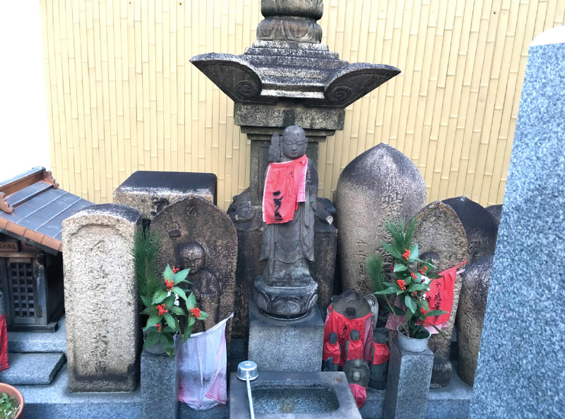 海泉寺の墓地には小西來山の夫婦墓が祀られています。墓石には「道法/貞林」の刻があります。この墓は1915年(大正4年)來山200年忌の際発見されました。